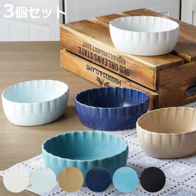 ボウル 14cm 輪花皿 花皿 花シリーズ 洋食器 陶器 日本製 同色3個セット ( 食洗機対応 電子レンジ対応 中鉢 サラダボウル 丸 輪花 花型 深皿 煮物鉢 デザートボウル 取り皿 副菜 おしゃれ かわいい 花びら 和モダン )