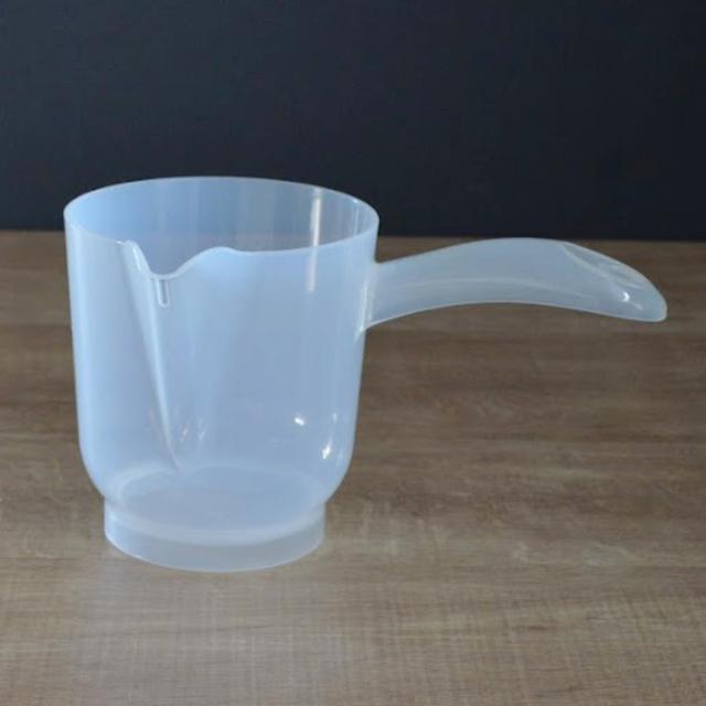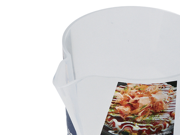 液体を注ぎやすい形状になっています。タコ焼き器の穴にもきれいに生地を流し入れることができます。