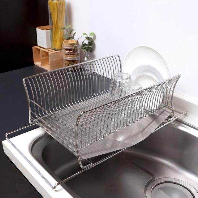 ゆるやかなカーブを描いた特殊な形状のワイヤーが、お皿のフチをしっかり支えてお皿が倒れにくいです。お皿を立てることで空気の通りが良くなり、乾きが速くなります。