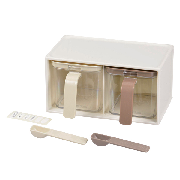 ストッカーには、小さじ1(5ml)スプーンと、調味料が一目で分かるように、種類分けできるラベルが付いています。