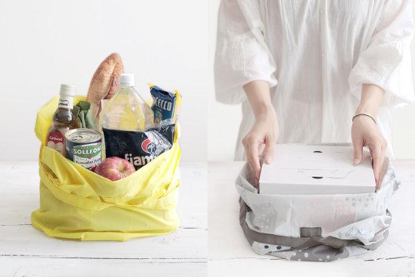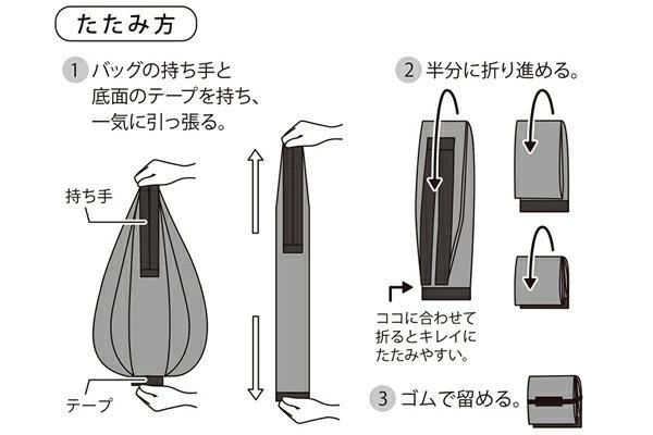 両側を引っ張るだけで一気にたためるコンパクトバッグ