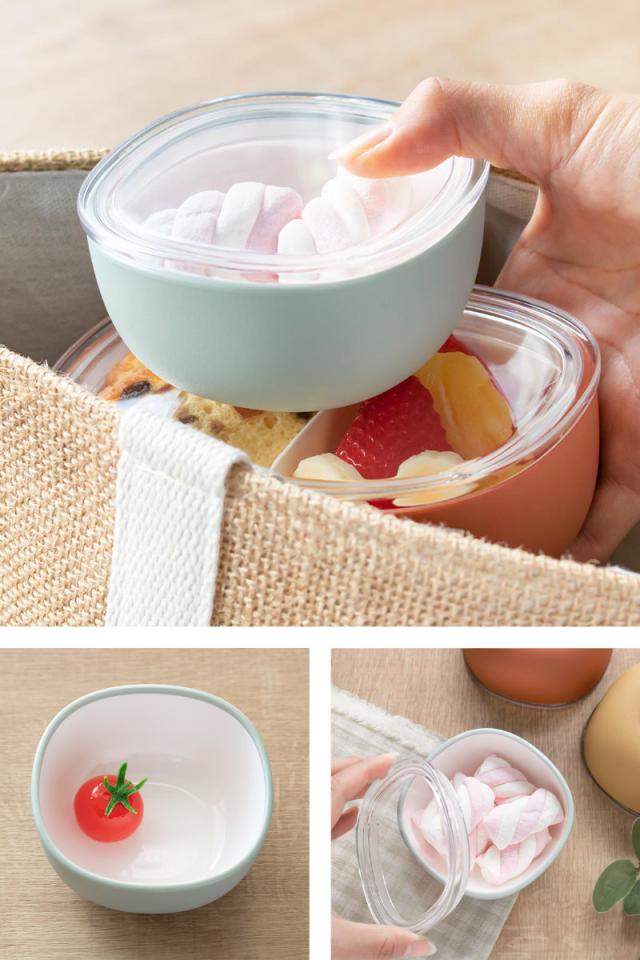 程よい深さで、ボーロなどのおやつやカットフルーツ入れにぴったりなサイズです。シリコーンパッキン付きのフタで中身がこぼれにくく、おでかけ時の持ち運びに便利です。お洒落なデザインなので、おでかけの気分を上げてくれること間違いなしです。