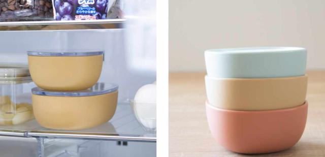 蓋がフラットなので積み重ねられて、冷蔵庫にスッキリと収納することができます。蓋を取れば重なりが良く、場所を取らずに収納できます。