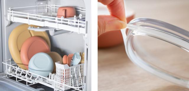食洗機に対応しているので、毎日の後片付けも簡単です。フタのパッキンは取り外しができ、分解して洗いやすいのも嬉しいポイントです。容器は丸みを帯びているので汚れが溜まりにくく衛生的です。