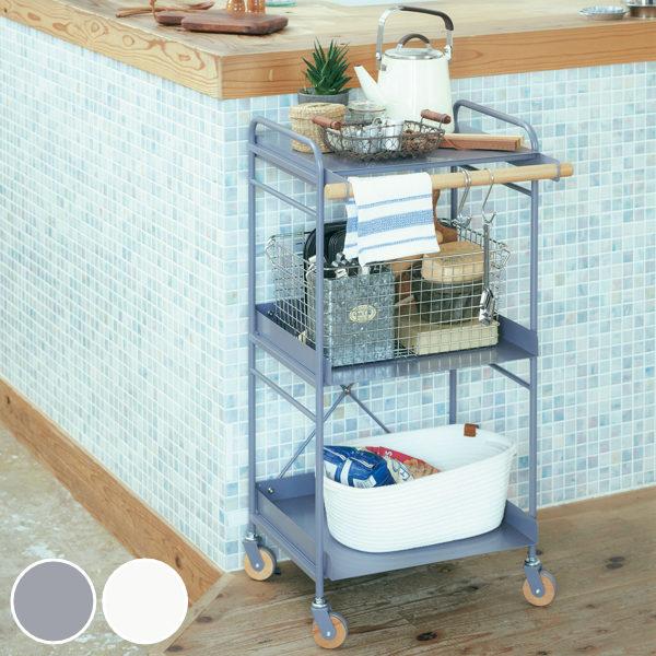 キッチンワゴン 3段 北欧風 スチールフレーム LIV 約幅46cm ( キッチン収納 ラック ワゴン 収納ラック 収納 スチールラック サイドワゴン キッチン 作業台 天板 天板付き キャスター スチール 白 おしゃれ )