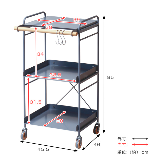| 耐荷重 | 全体:15kg 棚:5kg、バー:1kg |