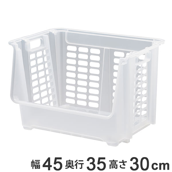 同シリーズのナチュラ ストックス浅型・深型とスタッキングできます。浅型や深型は通気性抜群のメッシュタイプで、湿気がこもるのを気にせず収納できます。