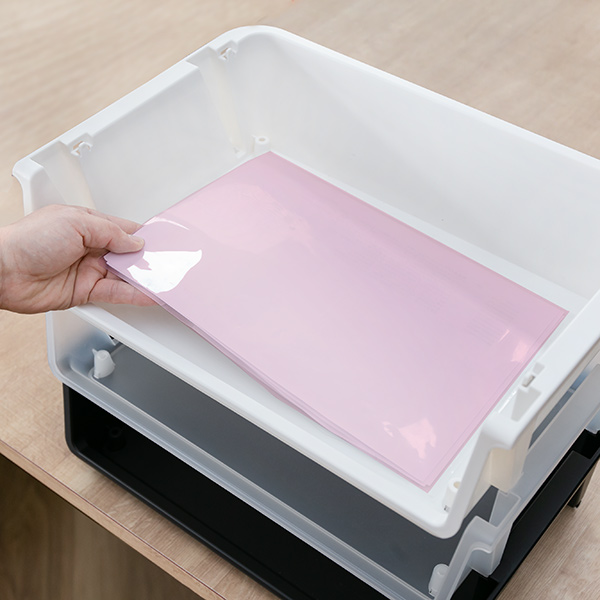 シンプルなデザインで置き場所を選ばず、リビングや寝室、子ども部屋、クローゼットなどあらゆる場所でお使いいただけます。 A4サイズがすっぽり収まる使い勝手のよいサイズです。
