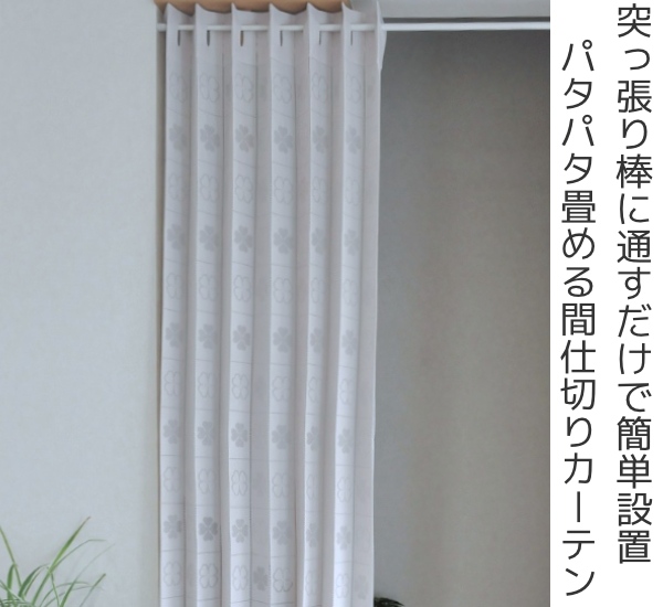 間仕切り カーテン 100×250cm パタッとたためるカーテン クローバー柄 ( 目隠し のれん 暖簾 仕切り つっぱり式 カーテンレール 断熱 洗える 取り付け 簡単 省エネ フリーカット コンパクト 玄関 リビング 窓 小窓 アコーディオン )