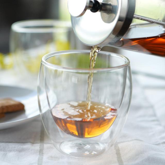 グラスに注いだ飲み物の温度を長時間キープできる、ダブルウォールグラス2個入りです。ほっと一息つきたい時にちょうど良い約250mlです。二重構造の中間に層があるので外気による温度変化が起こりにくく、飲み物の温度を飲み頃に保ちます。