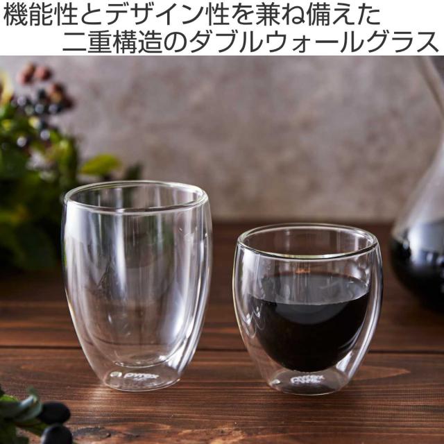 ダブルウォール グラス 2個入り 250ml Pyrex パイレックス 耐熱ガラス ( コップ タンブラー ダブルウォールグラス 耐熱 カップ 湯呑み ペア 二重構造 マグカップ 湯飲み ガラス 結露 水滴がつかない おしゃれ )