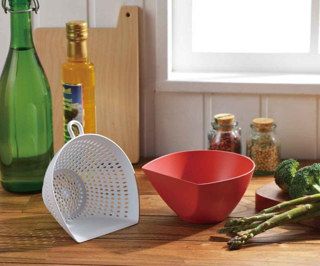 サッとすくえる、チリトリ型ボウル・ザルの便利なセット