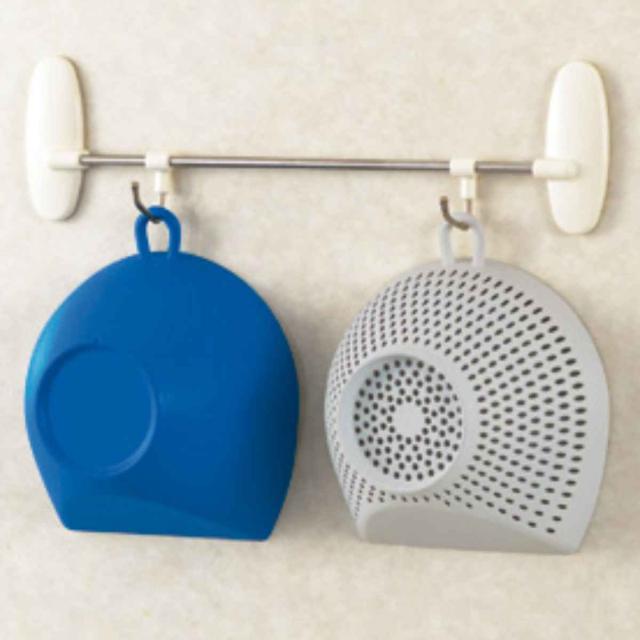 フックが付いているので、掛けて収納できて必要な時にすぐ使えます。同シリーズには、ホワイト、レッド、ブルーの3色ございますので、お好みや用途に合わせてお選びいただけます。