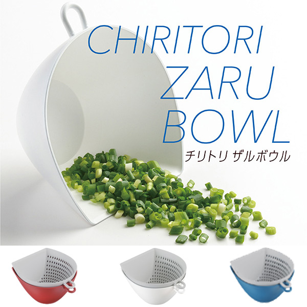 ●まな板の上で切った食材をサッとすくい取る、チリトリボウル・ザル各1個の便利なセットです。