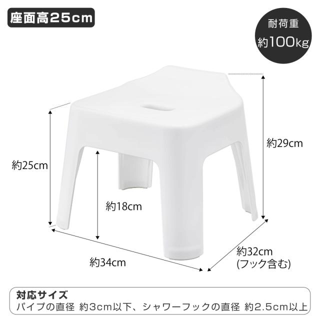 | 備考 | ※対応サイズ:パイプの直径/約3cm以下、シャワーフックの直径/約2.5cm以上 |