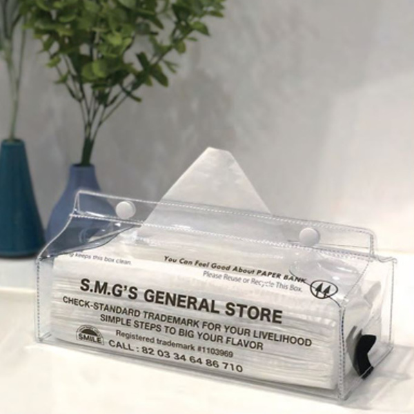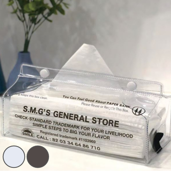 ●独特の形状と中身が見えるクリアタイプのティッシュカバーで、ティッシュペーパーが無くなるタイミングも逃さず便利に使用できます。