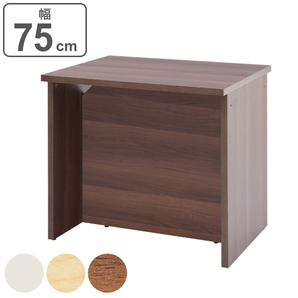 幅75cmでコンパクトなローカウンターです。幕板は天板奥行きの中央に位置していますので、対面での接客に最適です。また、落ち着きのある木目調で、お部屋の雰囲気に合わせて、ホワイト、ナチュラル、ブラウンの3色からお選びいただけます。