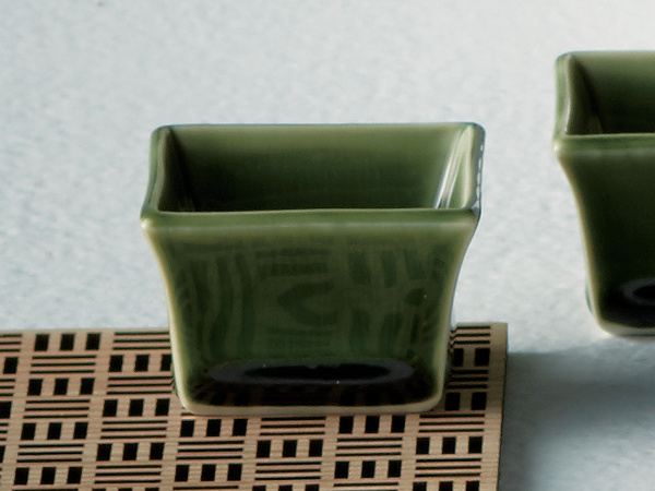 シンプルなフォルムと深いグリーンが目を惹く角珍味です。プレートの上にのせてアクセントにすればお料理の見せ方の幅も広がります。特別なひとときやおもてなしにぴったりです。電子レンジ・食洗機に対応しているので、普段使いにも最適です。
