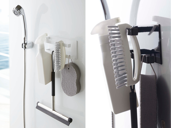 好きな場所に付けられるフックが2個付属しています。スポンジなどのバスグッズの収納におすすめです。