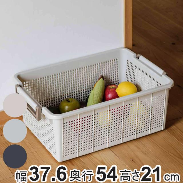 バスケット L 幅37.6×奥行54×高さ21cm スタッキング ( 収納ケース 積み重ね 収納ボックス 持ち手付き 収納 ケース ボックス 収納バスケット プラスチック ストッカー クローゼット収納 日本製 )