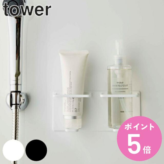山崎実業 tower マグネットバスルームチューブ&ボトルホルダー タワー M ダブル ( 4903208055062 チューブ ディスペンサー ホルダー ボトル ラック 磁石 2連 単品 強力マグネット 浴室 壁 壁面 収納 洗顔 2本 消毒 洗面 )