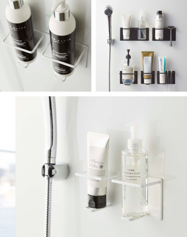 底にあたる接地面を少なくすることで、チューブやボトルの底がぬめらず衛生的です。無駄を省いたシンプルなデザインは水はけがよく、乾かしながら収納ができます。