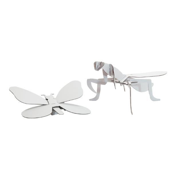 元はシンプルな白いダンボールなので、自由にお絵描きや色塗りを楽しめます。自分だけのオリジナルデザインのチョウ&カマキリを作ることができます。