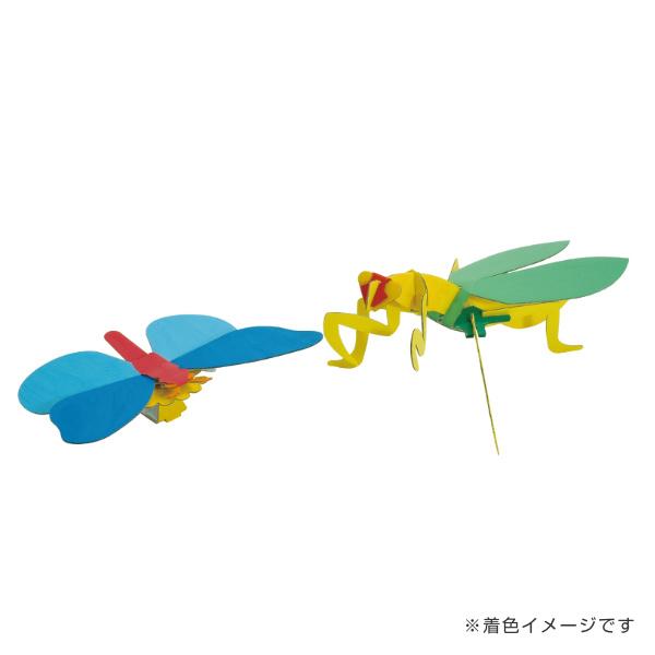 工作キット ダンボール製 hacomo kids チョウ カマキリ ( ダンボール 段ボール 蝶 おもちゃ ペーパークラフト 工作 子ども キッズ 組み立て 手作り キット 組立 作る 簡単 リサイクル エコ 立体的 本格的 お絵描き 色塗り )