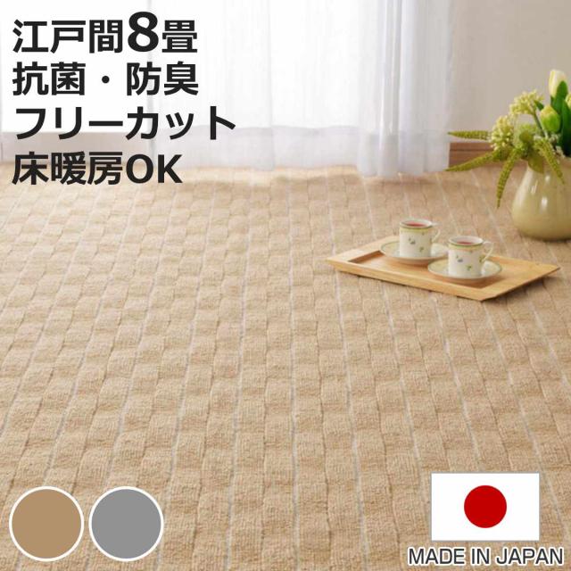 カーペット ラグ 江戸間8畳 平織カーペット メテオ 抗菌 防臭 カット可 ( 352×352cm ラグマット 江戸間 8帖 日本製 マット カットできる 敷き詰め タフトカーペット ぽこぽこ触感 平織り 床暖対応 ペット )