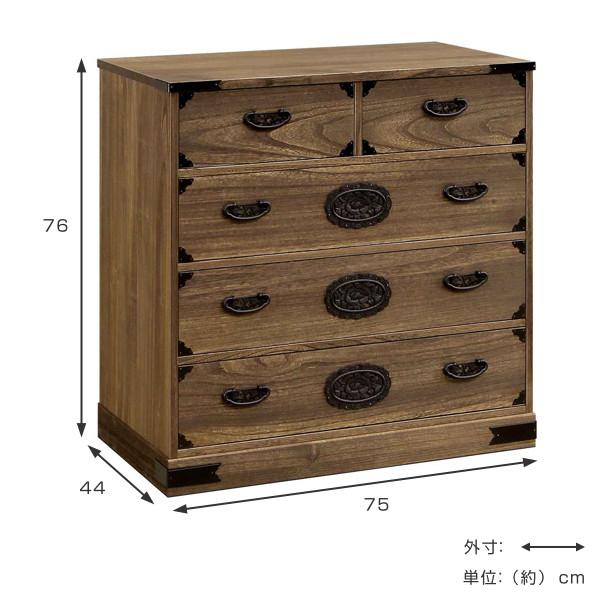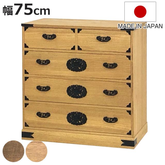 総桐 民芸たんす 幅75cm 4段 焼桐調オイル仕上げ ( 桐たんす 桐 タンス たんす 箪笥 桐箪笥 日本製 完成品 桐衣装ケース 桐タンス チェスト 衣類収納 和だんす 桐製 国産 )