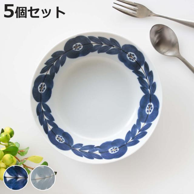 ボウル 15cm ブロッサム 磁器 美濃焼 5個セット ( 食洗機対応 電子レンジ対応 日本製 皿 深皿 盛り皿 食器 お皿 中皿 中鉢 平鉢 手描き風 花 汁もの 煮物 サラダ おしゃれ セット 5個 )