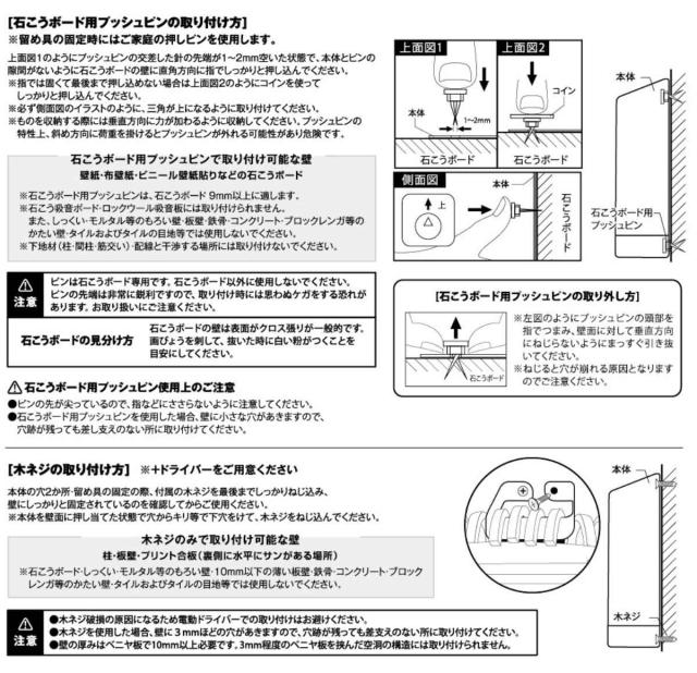 | 内容量 | 1個 付属品:木ネジ×4、石こうボード用プッシュピン×2 |