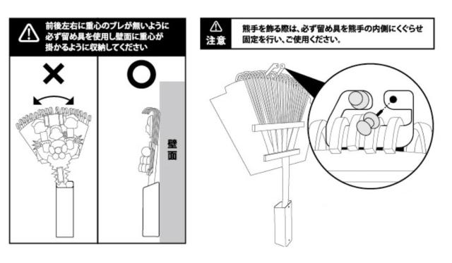 留め具を福笹の上部に取り付けることで、福笹を垂らすことなく飾ることができます。