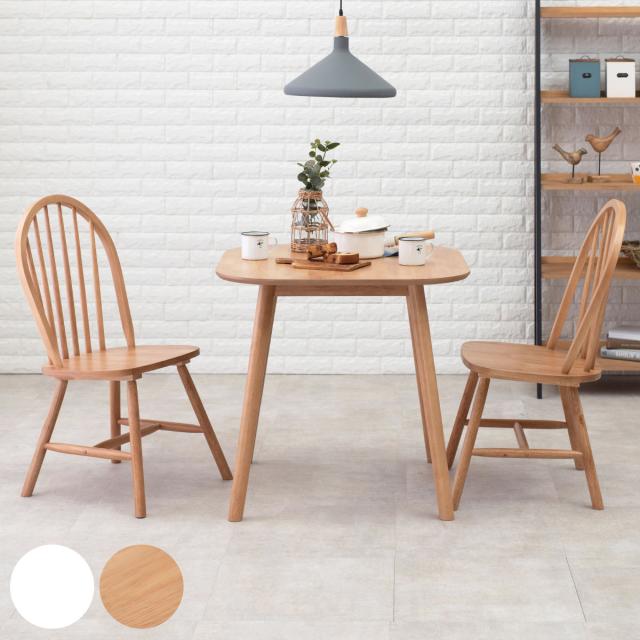 ダイニングテーブルセット 2人掛け 3点セット ウィンザーチェア 木製 ( テーブル チェア ダイニング3点セット 幅75cm 北欧 シャービー おしゃれ 木目 天然木 コンパクト ホワイト ナチュラル )