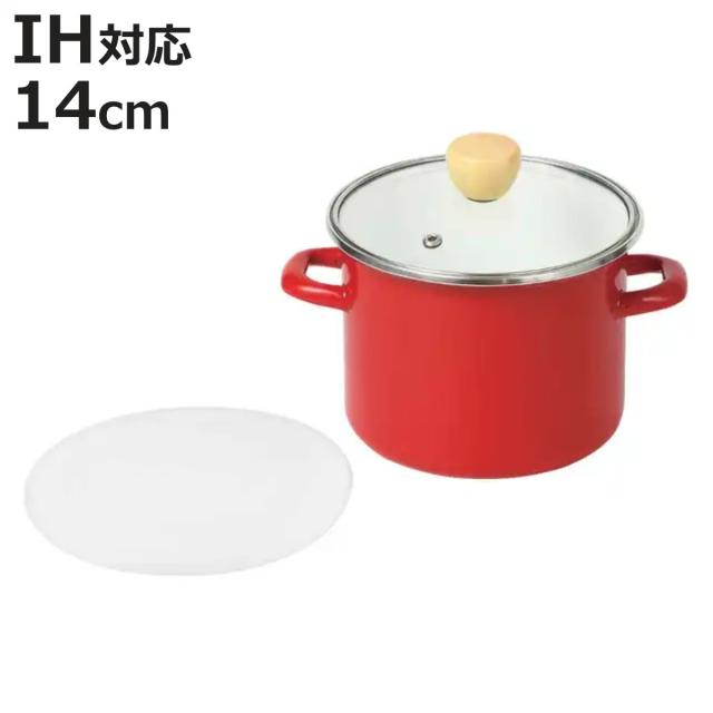 深型クックポット 14cm IH対応 ガラス蓋付き シール蓋付き クラッソ ( IH ガス火 対応 両手鍋 蓋付き 小さい 鍋 深型 ホーロー 両手なべ 小鍋 ミニ コンパクト 琺瑯 ポット ほうろう鍋 ガラス蓋付き )