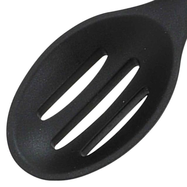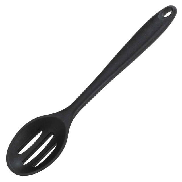 具だけをすくったり、混ぜたりできるシリコン穴あきスプーンです。やわらかいシリコン素材の中心には、ナイロン素材の芯が入っているので、やわらかくてもしっかりこしのある使い心地です。食器や鍋・フライパンを傷つけません。