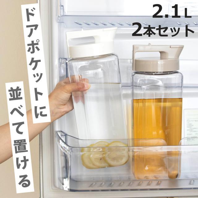 冷蔵庫のドアポケットにすっきり収まる冷水筒 2.1L 同色2本セット