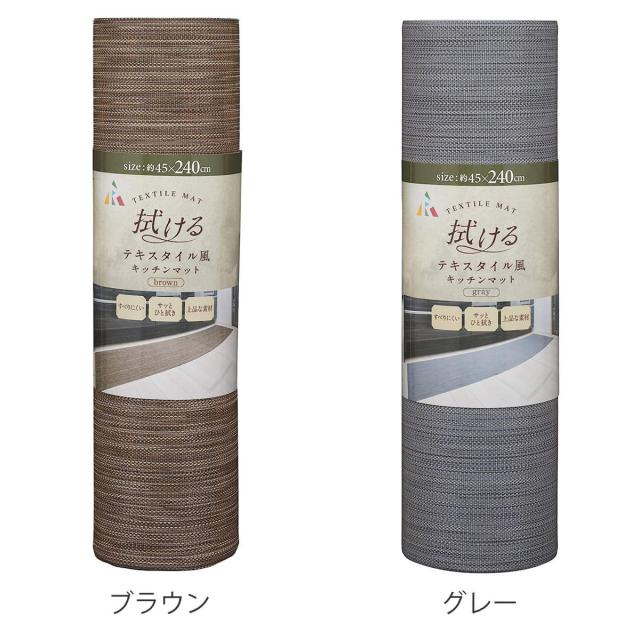 キッチンマット 拭ける テキスタイル風キッチンマット 45×240cm ( PVCマット キッチン マット キッチンラグ 台所マット 45cm 240cm おしゃれ インテリアマット 長方形 洗濯不要 お手入れ簡単 ナチュラル シンプル 無地 )