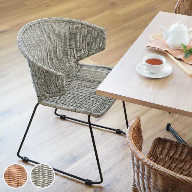 ダイニングチェア ラタン調 スチールフレーム 座面高45cm ( パーソナルチェア ラタン風チェア 椅子 PEラタン 人工ラタン ガーデンチェア アームチェア チェアー グレー おしゃれ )