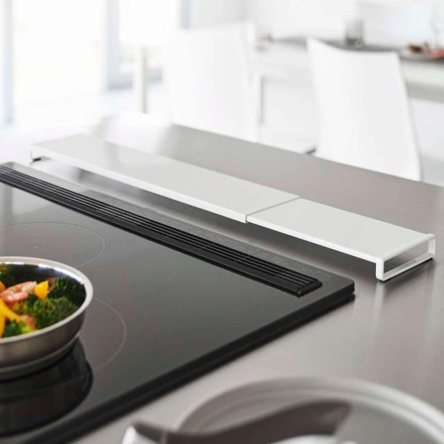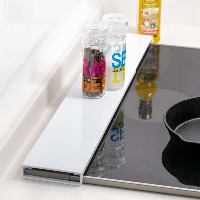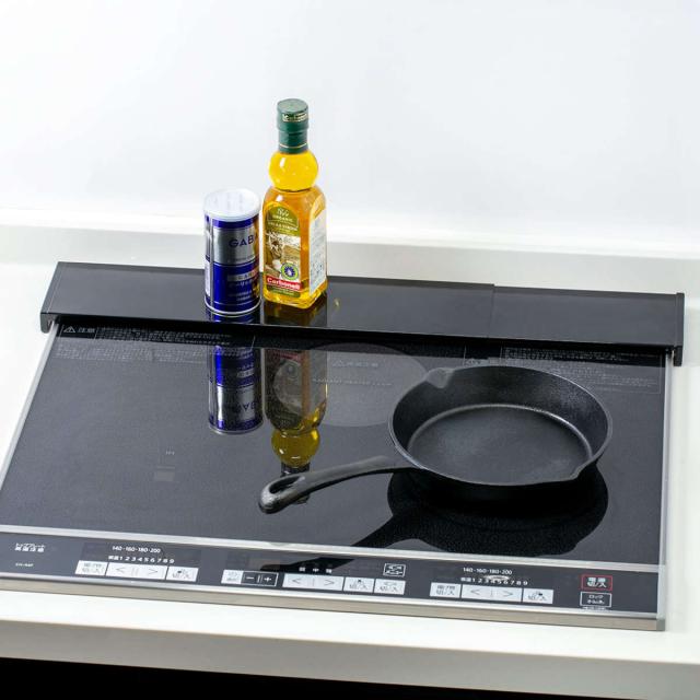伸縮タイプで幅:約44.5〜75cm、高さ:約1.5cm以下のビルトインガスコンロ、IHクッキングヒーターに対応しています。サッとスライドして伸ばすだけで、ご自宅のコンロサイズに合わせてピッタリ設置できます。