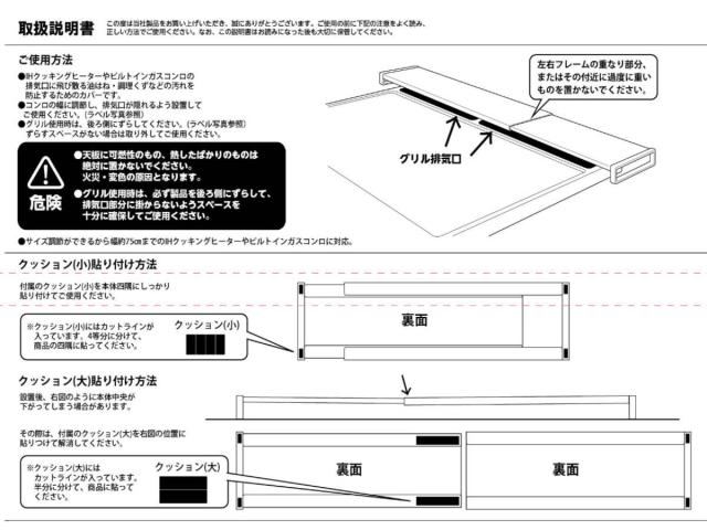 | 注意事項 | ※グリルをご使用の際は、排気口カバーをずらして排気口カバーにかからないようにして下さい。 |