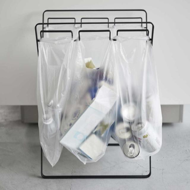 レジ袋をかけて手軽にゴミの分別ができるレジ袋スタンドです。フレームだけのスタイリッシュなフォルムなので、空間の雰囲気を邪魔しません。キッチンはもちろん、リビングでも使いやすいデザインです。