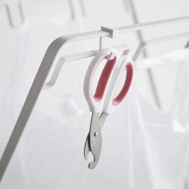 レジ袋を掛けられるフック付きです。ペットボトルキャップや紙パックなどの資源ごみを分別する事ができます。また、キッチン回りの必要なものをかけてひとまとめするのもおすすめです。予備のレジ袋を収納したり、分別用のハサミなどをかけておけるので大変便利です。