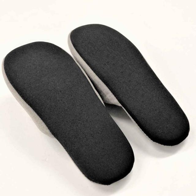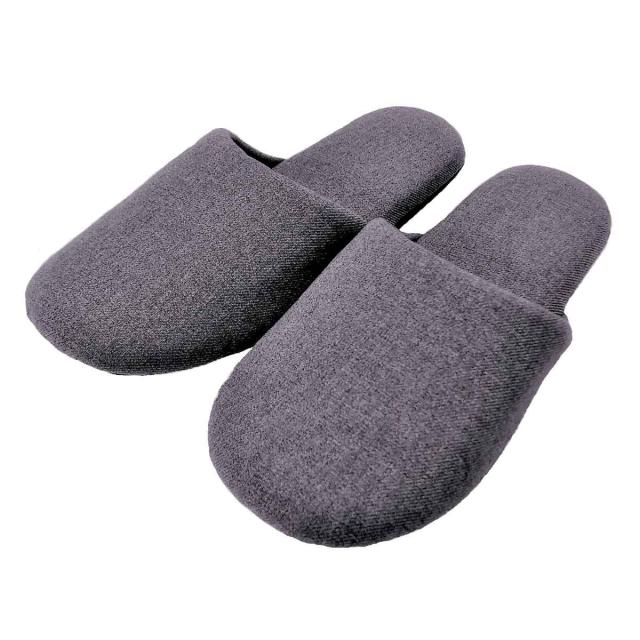 ポリエステルの中肉綾織り素材を使用したソフトスリッパです。 甲・中板に使用しています。裏側は汚れが目立ちにくい、黒色の生地を使用しています。