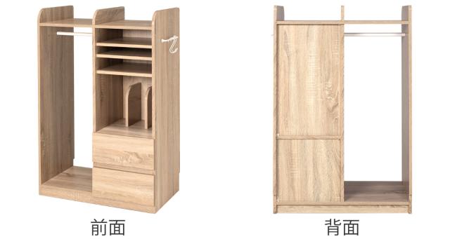 ラックの背面や引き出しの中もきれいな化粧仕上げになっています。壁付けだけでなく、背面が見える向きでも設置してお使いいただけます。