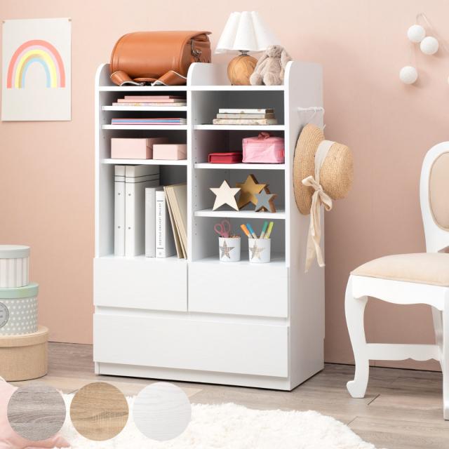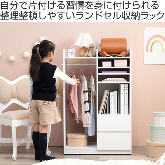 ランドセルラック 幅68.5cm ハンガータイプ 引き出し 木目調 ( 収納 ハンガー ラック 棚 可動棚付き ワードローブ リビングラック 本棚 ランドセル ワゴン 2人用 スリム おしゃれ キャスター付き キッズ かばん 置き場 )
