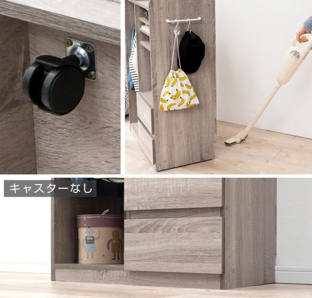 ラックには外からは見えにくく、見た目がすっきりするデザインの隠しキャスターが付いています。お掃除や模様替えの際の移動もラクに行えます。キャスターを取り外しての設置も可能です。