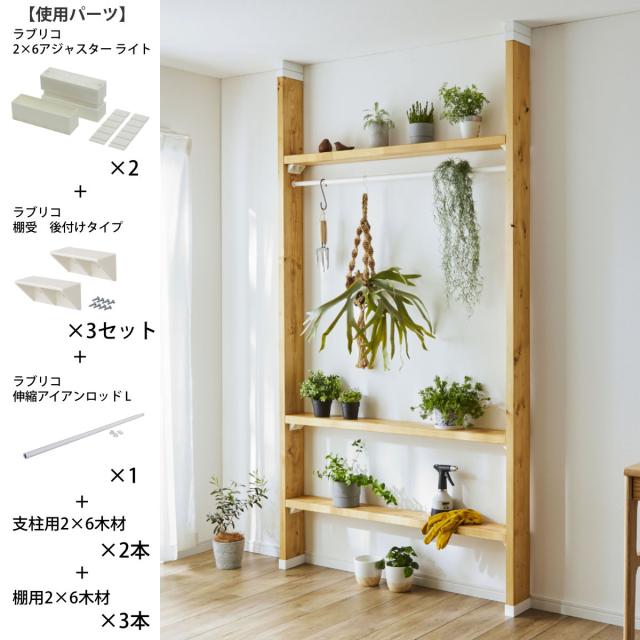 「LABRICO(ラブリコ)シリーズ」は特別な技術がなくても、安全で簡単に楽しめるDIY収納パーツです。ホームセンターで必要な木材を買ってパーツを組み合わせれば、柱や棚が作れます。安心・安全に配慮した商品設計で、壁や床を大きく傷つけず、住まいに合わせた自由なサイズで設置が可能です。