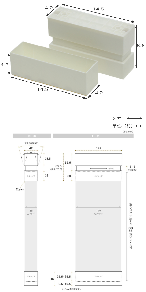 | サイズ | 幅14.5×奥行4.2×高さ:上キャップ8.6cm/下キャップ4.5cm |
