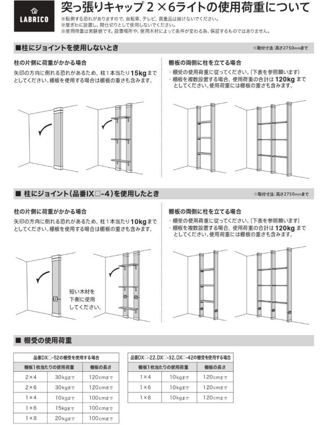 アジャスター ライト LABRICO ラブリコ 2×6 突っ張りキャップ ( パーツ DIY 突っ張り 収納 つっぱり 壁面収納 壁 間仕切り 賃貸 簡単取付 パーテーション ウォールシェルフ ウォールラック 突っ張り収納 見せる収納 おしゃれ )